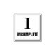 Este carimbo contém a letra "I" e a palavra "INCOMPLETE". Ele poderia ser usado por professores, educadores ou assistentes de ensino ao dar uma nota enquanto marca suas tarefas, testes, projetos, testes, exames, trabalhos e outras obras acadêmicas.