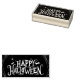 Este selo é de madeira e apresenta um impressão gráfico Feliz Halloween e teias de aranha. Personalize este item ou comprar como está.
