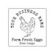 Fazenda de carimbo de Ovos Frescos de design russa com fontes de estilo rústico e ilustração de galinha desenhada à mão. Criar carimbos profissionais de criação para ovos frescos de galinhas criadas ao ar livre, caixas de ovos, embalagens de carne de aves de capoeira ou qualquer outro produto conexo, utilizando este modelo de carimbo editável.