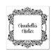 O carimbo personalizável apresenta uma silhueta de quadros quadrados do ornamentado com texto de script moderno. Use para produtos, favores de casamento e muito mais!