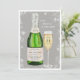 Os convites de festas de Ano Novo Festivos apresentam uma garrafa de champanhe ilustrada e vidro de flauta com os detalhes do seu partido no rótulo da garrafa e vidro de champanhe.