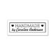Carimbo de borracha com o texto "Fita à mão", flanqueado por dois corações e nome personalizável abaixo.