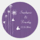 Este adesivo de na moda tem um fundo de listras roxas de ameixa escura com borboletas brancas e design florais à esquerda. À direita, você pode personalizar facilmente os nomes da noiva e do noivo junto com a data da cerimônia de casamento. Isto pode ser utilizado como autocolante ou como selo de envelope.