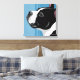Retrato de perfil contemporâneo ilustrado de Boston Terrier com fundo azul na canvas.