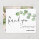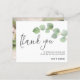 Um alternativo de 4,5 pol x 5,6 pol com preço inferior. Disponível em um STOCK DE CARTÃO SEMI-GLOSS 110 lb, que é a opção padrão (mais espesso para convites), OU um STOCK de PAPEL THINNER FINISH 80 lb FINISH (ideal para gabinetes). Os envelopes são um extra opcional e são ligeiramente maiores que o tamanho da placa. Um galho de ouro elegante de folhas verdes de eucalipto flui parcialmente do lado direito, com a tipografia set Obrigado em um roteiro moderno ao lado esquerdo. No verso, troque sua foto favorita do dia (de orientação paisagística). O resto do texto na frente você pode facilmente personalizar para suas próprias palavras. Você também pode estar interessado em nosso nome de convidado individual e folhas de adesivos de endereço nesta coleção para ajudar nas suas malas de núpcias.
