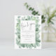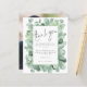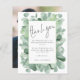 Um valor para o alternativo do ORÇAMENTO em tamanho menor de 4,5 x 5,6" de semirbrilho de 110 lbs, que é de espessura semelhante a um cartão postal (no entanto, não é adequado para uso como cartão postal). POR FAVOR, OBSERVE QUE HÁ UM convite por folha. Casamento De Foto De Eucalyptus Obrigado. Lush green botanicals enquadra a tipografia, com Obrigado em um roteiro elegante, e sua foto no verso como recordação para seus convidados. Personalize facilmente o resto do texto e substitua a foto do exemplo no verso por sua.