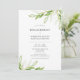 Estes convites de festa de noivado apresentam folhas de aquarela em tons de verde. Use os campos modelo para adicionar seus detalhes personalizados. Solicite cartões impressos on-line ou convites imprimíveis. Escolha botânica para eventos com temas rústicos e jardins. Para ver mais designs como esta, visite www.zazzle.com/dotellabelle Arte a aquarela exclusiva e design por Victoria Grigaliunas do Do Tell A Belle.
