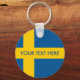 Chaveiro de botão redondo de bandeira sueca para Suecia. Sinalizador de país design com texto personalizado. Orgulho escandinavo. Design personalizado personalizado com seu texto.