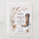 Celebrar a mãe a ser com este convite de chá de fraldas Rustic Boots e Brunch. Apresentando elegantes botas de aquarela, capim de pampas e detalhes florais neutros, este convite dá o tom para uma celebração charmosa e na moda. Totalmente personalizável com os detalhes do evento, é perfeito para chás de fraldas baseados no país ou inspirados no ocidente. Opções disponíveis para download ou impressas para ajustado das suas necessidades.