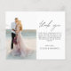 Casamento Minimalista Obrigado Cartões que têm uma foto na frente e atrás. Os cartões de agradecimento contêm uma tipografia cursiva moderna, escrita com letra de mão, que é elegante, simples e moderna para usar após a celebração do dia do casamento.