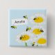Abelhe no Botão Quadrado Flor. Personalize o botão com o seu nome ou o seu próprio texto de uma forma fácil.