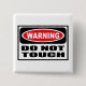 Advertir NÃO TOCA no botão que você pode personalizar em www.WarningSignShirts.com e caracteriza um sinal de aviso vermelho e preto e NÃO O TOCA em letras pretas corajosas para advertir o mundo. Você pode igualmente personalizar seu próprio botão do sinal de aviso com o texto que você quer.