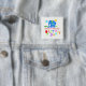 Adicione o nome e a idade do seu filho e entregue este belo botão aos convidados da festa de aniversário do seu filho. Um lindo elefante de desenho animado com orelhas redondas sorri alegremente com olhos fechados e longos, rodeados pelo sol, nuvens e grama. Fica acima de um arco-íris, flanqueado com flores, com a inscrição colorida "Partido do Vamos". Um design original disponível exclusivamente na loja online ©EleSil.
