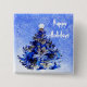 Bóton Quadrado 5.08cm Árvore de Natal decorada em azul