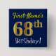 As características deste design quadradas simples do botão uma mensagem gostam do "aniversário nome do 68th! ", com "68th" tendo o falso/imitação ouro-como o olhar da coloração, em um fundo colorido azul. O nome pode ser personalizado. Os botões como estes poderiam talvez ser vestidos por convidados em uma festa de aniversário para alguém que está comemorando seu sessenta oitavos aniversários, onde o partido está sendo realizado em uma grande área com lotes de outras pessoas atuais (como um parque da cidade ou um parque temático). [~Z0000164]