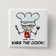 Beije o cozinheiro! botão do pinback. Cozinhando presentes com desenhos animados engraçados, provérbios bonitos, citações e piadas cómicos. Personalize e personalize produtos com seu próprio texto ou nome. Criar presentes relaciona-se ao cozimento, ao cozimento, ao churrasco, à comida e a mais. Presente bonito para a cozinha home e cozinheiros profissionais do cozinheiro chefe.