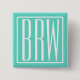 Bóton Quadrado 5.08cm Bold Modern 3 Iniciais Monograma | Branco Em Aqua