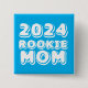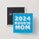 2024 Botão Rookie Mamãe com texto preto para a primeira vez que o mães for lançado.