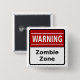 Aviso - zona do zombi - pino quadrado do botão com design vermelho, branco e preto do estilo do sinal de aviso.