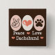 Bóton Quadrado 5.08cm Botão Dachshund do Peace Love