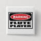 Botão que de advertência do JOGADOR de FLAUTA você pode personalizar em www.WarningSignShirts.com e caracteriza um JOGADOR vermelho e preto do sinal de aviso e de FLAUTA em letras pretas corajosas advertir o mundo. Você pode igualmente personalizar seu próprio botão do sinal de aviso com o texto que você quer.