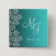 Bóton Quadrado 5.08cm Botão de Casamento Damask Turquoise