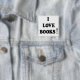 Bóton Quadrado 5.08cm Botão "I Love Books" Livros Negros