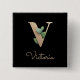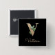 Bóton Quadrado 5.08cm Botão Letra V Dourada Monograma Elegante