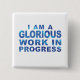 Um Botão para ajudar a reforçar seu espírito e energia positivos! Você é um Trabalho Glorioso em Andamento!