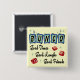 Está aqui um design gráfico inspirado Bunco do divertimento que caracterize cores retros do 50 e um design temático retro. Mostre-lhe o amor do bunco com este boas épocas, bons risos e bom botão dos amigos. Dê um como um prêmio ou um presente. Abotoe características três dados afortunados vermelhos.