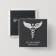 Bóton Quadrado 5.08cm Caduceus Antracite Limpo Detalhado, Branco Médico