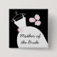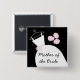 Bonito crachá de botões de tema de noiva com um vestido estilizado de noiva e flores em tons de rosa, preto e branco. Um design personalizável para você personalizar com seu próprio texto, imagens e ideias.