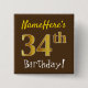 Bóton Quadrado 5.08cm Castanho, Faux Dourado 34º aniversário, com nome p