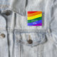 Comemore o Orgulho e mostre seu apoio e amor a todos na comunidade LGBTQ com este botão de bandeira do orgulho. O botão quadrado apresenta uma bandeira arco-íris ondulada com Celebrate. Suporte. Amor. numa tipografia branca moderna.