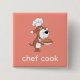 Este Botão Quadrado apresenta uma ilustração fofa de um pequeno Cão engraçado sobre o fundo cor-de-rosa pêssego. A pãozinha é vestida como cozinheiro de cozinheira (e avental) e segura o prato com a comida bem preparada. Você pode personalizar ou substituir facilmente a inscrição "cozinheiro de chef" usando ferramentas online do Zazzle. presente de excelente por ocasião de aniversário, Dia de as mães, Dia de os pais, Aquecimento da Casa, etc.