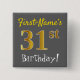 As características deste design quadradas simples do botão uma mensagem gostam do "aniversário nome do 3ø! ", com "3ø" tendo o falso/imitação ouro-como o olhar da coloração, em um fundo colorido (cinzento) cinzento. O nome pode ser personalizado. Os botões como estes poderiam talvez ser vestidos por convidados em uma festa de aniversário para alguém que está comemorando seu primeiro aniversário trinta, onde o partido está sendo realizado em uma grande área com lotes de outras pessoas atuais (como um parque da cidade ou um parque temático). [~Z0000192]