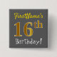 Bóton Quadrado 5.08cm Cinzas, Faux Dourado 16.º Aniversário, Com Nome Pe