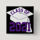 Dê a esta Classe Roxa de Botão de Boné de 2024 para seu formando favorito se formando este ano. Personalize-o com o ano de aula. Este botão apresenta um boné branco de formando sobre um fundo preto com escrevendo roxo. É perfeito para formandos com espírito escolar.