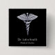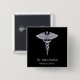 Bóton Quadrado 5.08cm Classy Silver Caduceus Medical em preto