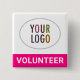 Bóton Quadrado 5.08cm Crachá de Voluntário Rosa Quente com Praça Pinback
