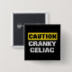 Crachá com um sinal de aviso que diz Caution Cranky Celiac.