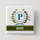 Bóton Quadrado 5.08cm Delicar Ivy Wreath e o nome do Arco com Monograma