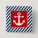 Design com temas náuticos com decoração de âncora em quadrado sobre fundo listrado a azul e a branco