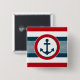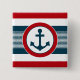 Design náutico com decoração em forma redonda com âncora sobre fundo listrado a azul, vermelho e branco