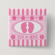 Design de anúncio de menina em rosa e branco em fundo listrado