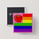 Botão quadrado com uma maçã da bandeira e do professor do arco-íris