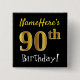 As características deste design quadradas simples do botão uma mensagem gostam de "do aniversário do 90 NameHere! ", com "o 90" tendo o falso/imitação ouro-como o olhar da coloração, em um fundo colorido preto. O nome pode ser personalizado. Os botões como estes poderiam talvez ser vestidos por convidados em uma festa de aniversário para alguém que está comemorando seu aniversário ninetieth, onde o partido está sendo realizado em uma grande área com lotes de outras pessoas atuais (como um parque da cidade ou um parque temático). [~Z0000162]