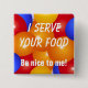 Botão engraçado para garçonetes. Eu servo sua comida seja agradável a mim.