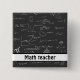 Botão preto com equações matemáticas em branco para amantes da matemática. O texto diz "professor de matemática", mas pode ser personalizado. Desenhada por Patricia Alvarez.
