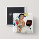 Artista:Joe DeMers | Mulher de vestido listrado em zebra e alfinete de flor vermelha que se debruça sobre uma cadeira que fala com um homem de fato branco